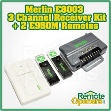 Merlin E8003 Tri Channel Receiver & E945M Remote Kit Garage Door Security+ 2.0