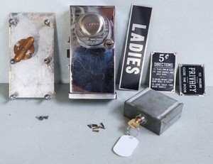 - 1930s ADVANCE 5c COIN OP Pay Toilet Door Lock Original Works with Keys restroomOpens in a new window or tabPre-ownedAU $117.66treasureray (24,447) 100%1 bid · Time left5d 23h left (Sun, 08:30 pm)+AU $129.03 postagefrom United States