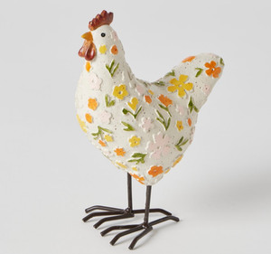 CHICKEN SCULPTURE Eggsworth Chook daisy flowers floral resin gift garden farm