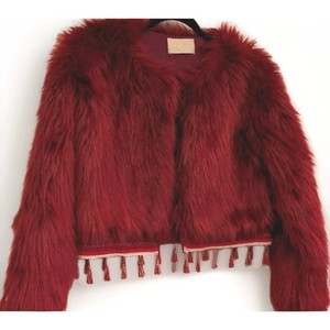 Winora Jacket Womens 12/XL Earthy Red Faux Fur Cropped Coat Jacket With Fringing