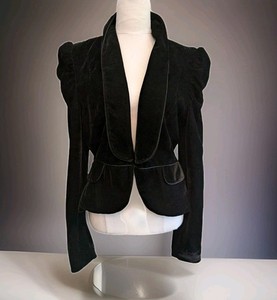Vtg Velvet Jacket Womens 12 Black Hook Closure Peplum Puff Sleeve Goth Victorian