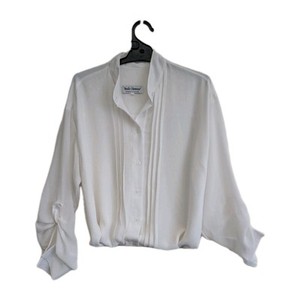 Belle Chemise Blouse Womens 12 White Chiffon Lined Pin Tucked Adjustable Sleeve