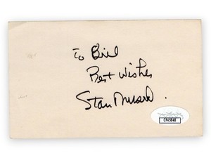 Stan Musial Signed Autographed 3X5 Index Card Cardinals "To Bill" JSA CF45848