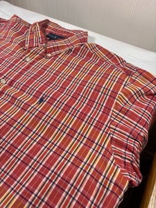 Vintage Ralph Lauren Blake Shirt XL Red Yellow Plaid Button Down Long Sleeve