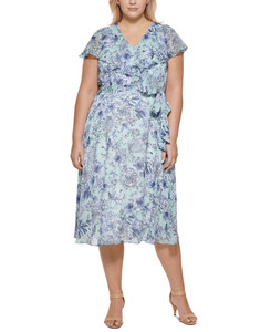 Tommy Hilfiger Womens Plus Chiffon Floral Sheath Dress Size 14W