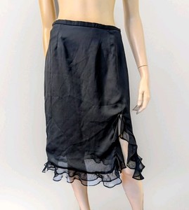 Vintage Black Romantic Silk Ruffle Slit Midi Skirt Lili Size 10 Australia 90's