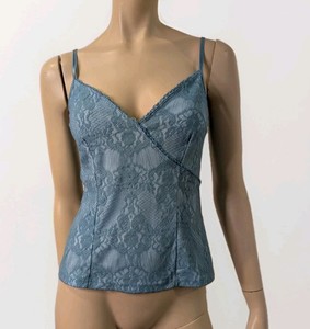 Vintage Lace Cami Top Blouse Size 12 M Dusty Blue Romantic Fairy Indie Sleaze