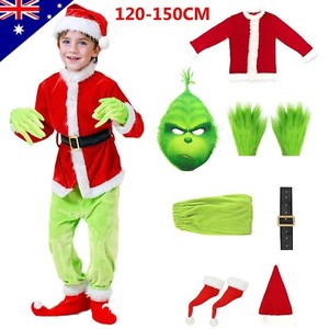 Kids Child Christmas Grinch Costume Cosplay Mask Xmas Santa Outfits Dress Hat AU