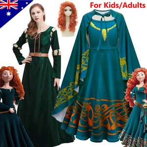 Adults Kids Braver Merida Cosplay Costume Dress Wig Outfit Party Fancy Dress Up