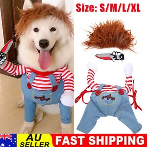 AU Halloween Pets Dog Cat Fancy Costume Chucky Cosplay Poppy Dress Jumpsuits Set