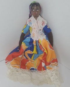 Vintage African Cloth Rag Doll Handmade Folk Art Black Lady Ethnic 10"