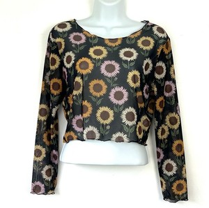 Princess Highway Top Sz 12 – Sheer Mesh Crop Pastel Sunflower Long Sleeve boho