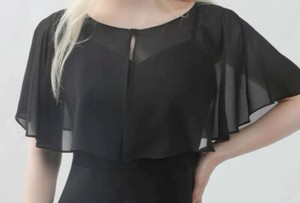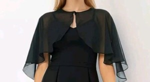 New❣️Cover-Up BLACK Chiffon Wrap Cape Bolero Sheer Wedding Bridal Evening Party