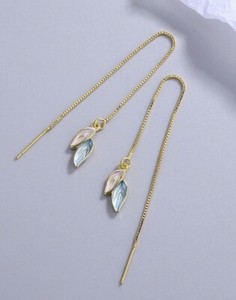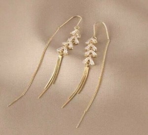 NEW Gold Plated Leaf Threader Classic Earrings Thread Au Tassel Au Thin Chain