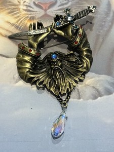 New 💕art Vintage Mystical Wizard Sword Antique Gold Tone Statement Brooch