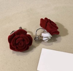 NEW 💕VINTAGE STYLE GOLD-PLATED Velvet Feel CLIP-ON WINE ROSE EARRINGS 1.5cm