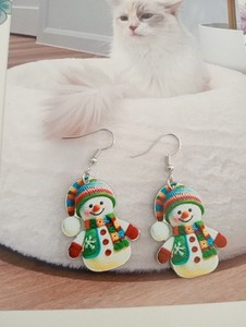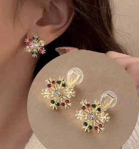 New💞Clip on gold-plated Red multi colored Christmas earrings Rhinestone