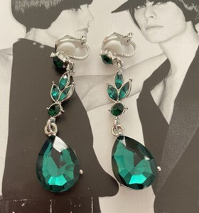 NEW CLIP ON Emerald Green and Clear Crystal Drop Dangle Statement Earrings AU
