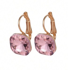 New 💕PINK Alloy Gold Plated Square shaped Gem Stoned Dangle Earrings