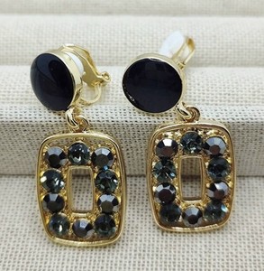 New 💕CLIP ON EARRINGS Gold Plated Rhinestone Crystal Black Teardrop dangle