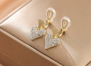 NEW ❣️CLIP-ON VINTAGE-INSPIRED GOLD PLATED HEART RHINESTONE DANGLE EARRINGS