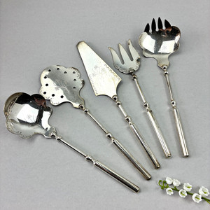 Vintage EPNS Serving Utensil x 5 Piece Set with Floral Etching Silverplate