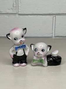 VTG Anthropomorphic Cats In Overalls Bow Salt And Pepper Shaker Set Kitsch Japan