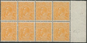 KGV - Small Multi wmk. perf.13.5 x 12.5: 1⁄2d Orange (SG.94) marginal blk.(8)