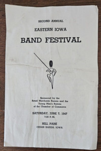1947 Cedar Rapids, IA Eastern Iowa Band Festival program Hill Park