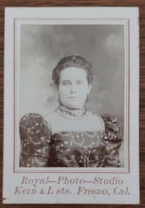 Fresno CA CDV pretty woman in dress w bows 1880s 1890s by Royal Photo Studio