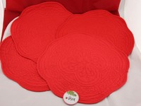 I LOVE THE PLACEMATS....I TOOK AWHILE DECIDING WHETHER TO BUY OR NOT BECAUSE I ALREADY HAD RED PLACEMATS FOR CHRISTMAS...I'M GLAD I DID.....THESE ARE JUST AWESOME...THE DESIGN IS SUCH AS YOU WOULD FIND ON A HANDMADE QUILT...I WILL USE THEM AS OFTEN AS POSSIBLE..CHRISTMAS, VALENTINE'S DAY FOURTH OF JULY!!
