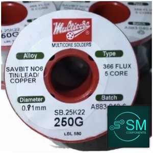 1 X 250gms Multicore Solder, Savbit 6 Tin/lead/copper 366 5 Core Solder 0.91mm
