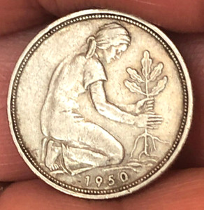 GERMANY 1950-D German Fifty (50) Pfennig Coin