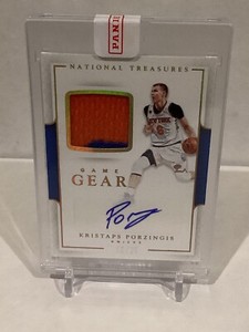 2016-17 Kristaps Porzingis National Treasures Game Gear Patch auto #d 15/25 worn