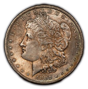 1885 $1 Morgan Silver Dollar - Luster - Rainbow Accent Toning - SKU-D3382