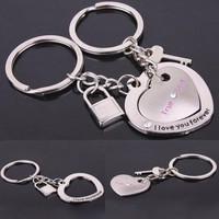 1Pair Love Heart Couple Key Chain Ring Keyring Keyfob Lover Gift Couples Partner